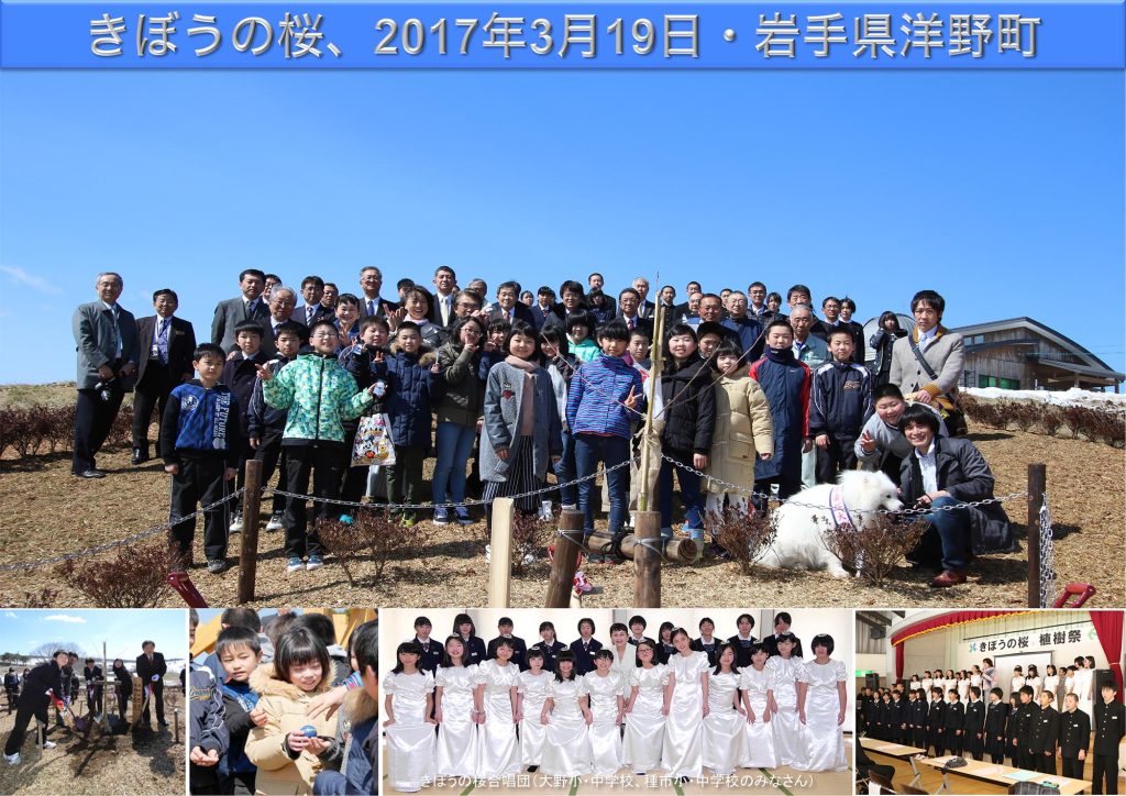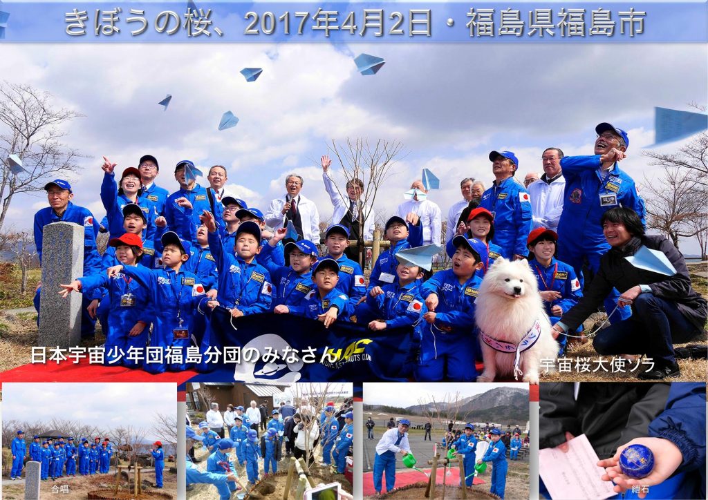 若田光一宇宙飛行士とともにその種が宇宙を旅した日本各地の巨大桜の直系子孫(宇宙桜)を、津波到達点上に植え、千年風化しない避難の目印として、そして宇宙からも見える復興のシンボルとして、この星の子孫たちに残します。