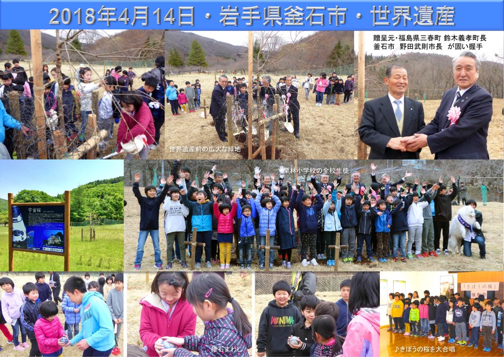 日本各地で少年少女らの手によって集められた千年級の名桜(山高神代桜、三春滝桜、根尾谷淡墨桜、醍醐桜、ひょうたん桜、角館武家屋敷枝垂桜など)の種が、若田光一宇宙飛行士とともに国際宇宙ステーション「きぼう」に8ヶ月半2008.11/15 から 2009.7/31)滞在し、地球帰還後、そのごく一部が発芽して「宇宙桜」が誕生しました。